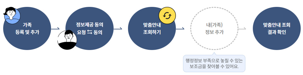 가족 구성하고 가족 맞춤안내 조회하면 한집에 살고 있는 가족(동일세대) 뿐 아니라 함께 살지 않는 가족(분리세대)의 보조금도 찾을 수 있습니다.